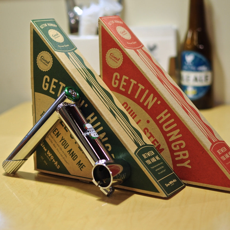 A simple but strong and worthy quill style stem constructed from Chromoly. Single Bolt bar clamp offers a minimal look. A quill stems ease of adjustability is it's hallmark- as you can make height adjustments on the fly. The Chromoly material offers some dampening to help buff out some ride chatter, and give your hands and wrists a break. Gettin' Hungry's minimal design aesthetic is arrived at by stripping away all superfluous elements - a Nitto classic in true form.