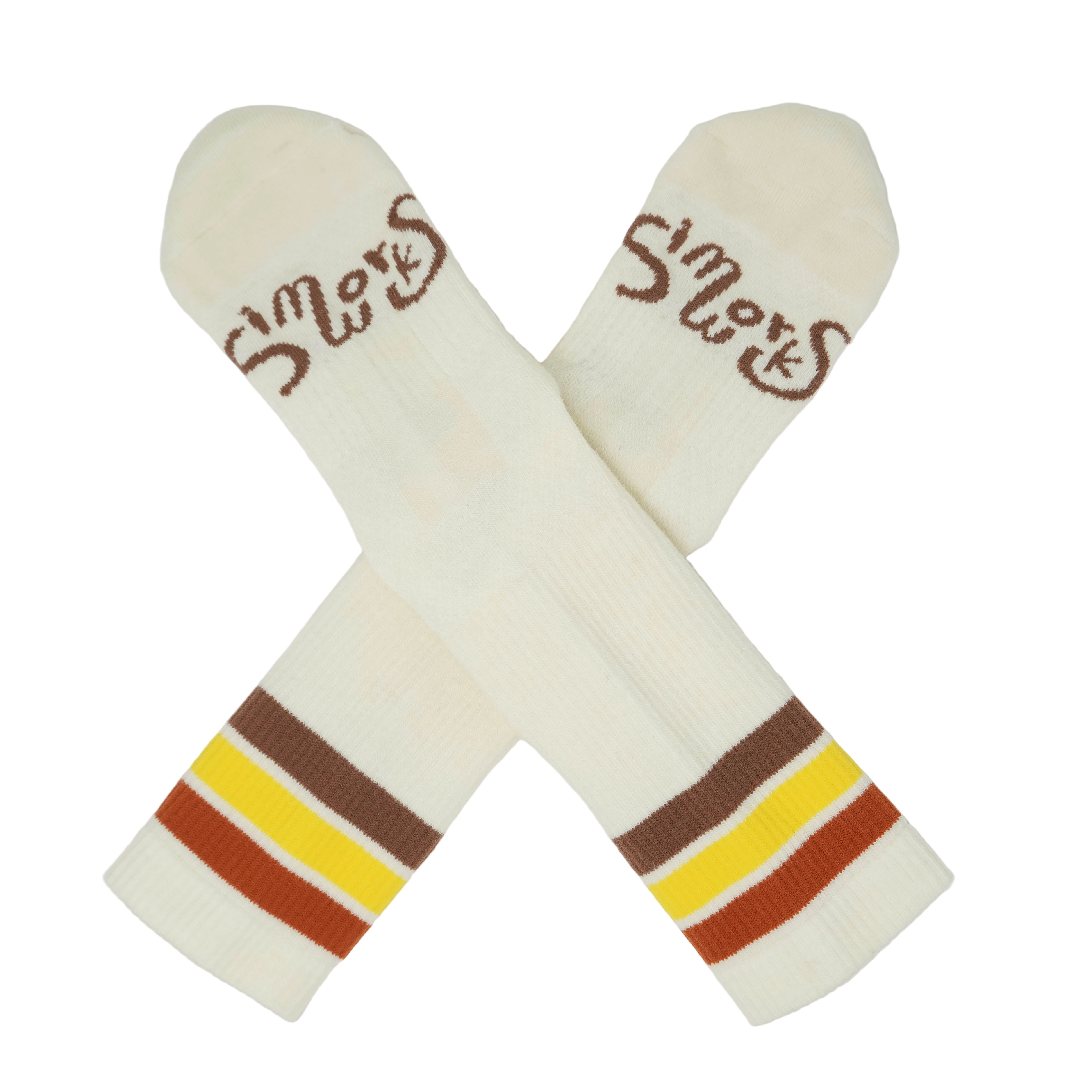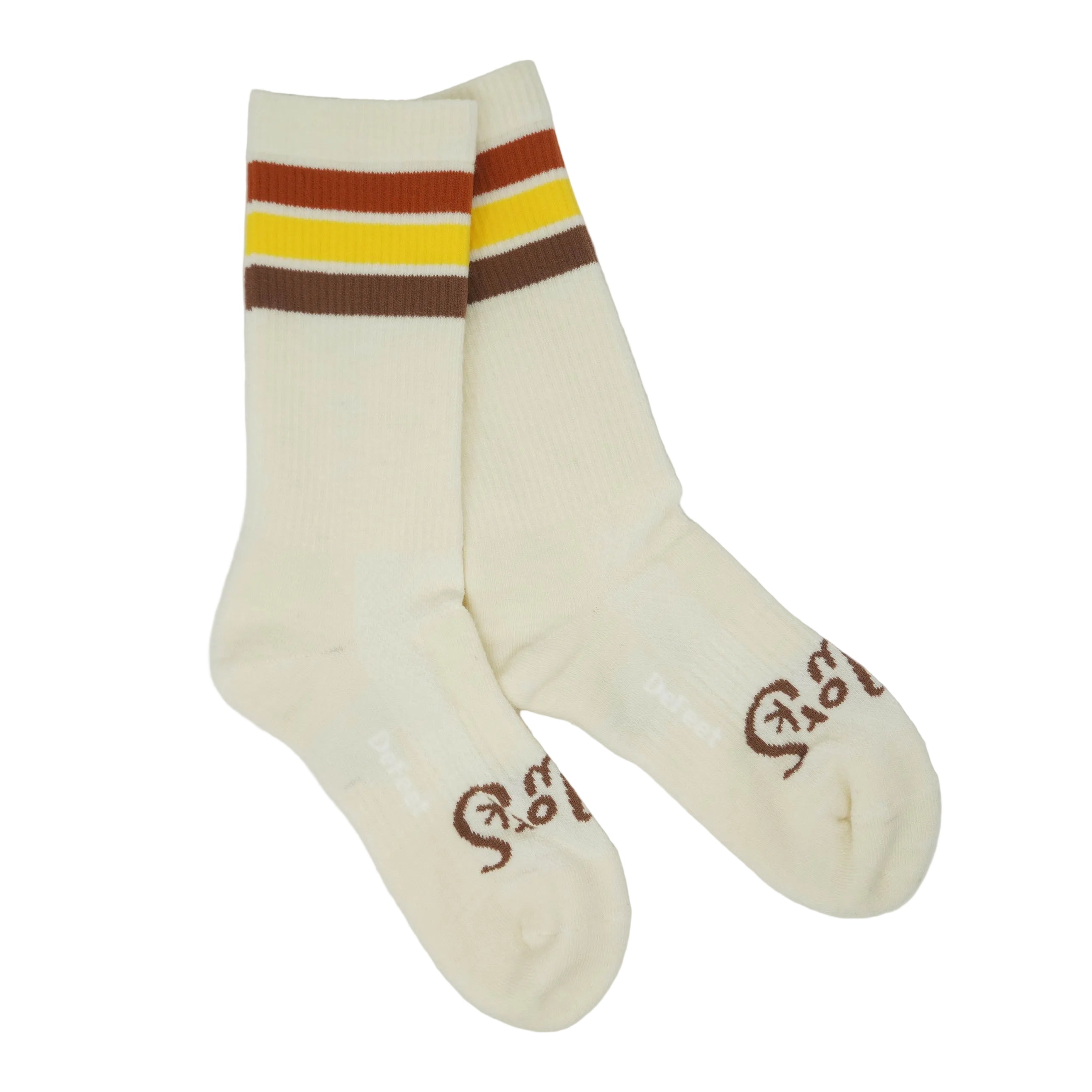 They're a great seasonal option for people just looking for a go-to casual sock that could certainly be worn on a bike ride, thrown on after a chilly day of surfing, or hanging out in camp or just strutting around town. Some quality merino blend socks are a great staple item that can always find a use in just about anyone's wardrobe. The colors are memorable- kind of leaning in to 70s retro vibes, they're a nice weight that we would probably characterize as 3-season. They're durable and made here in the States.